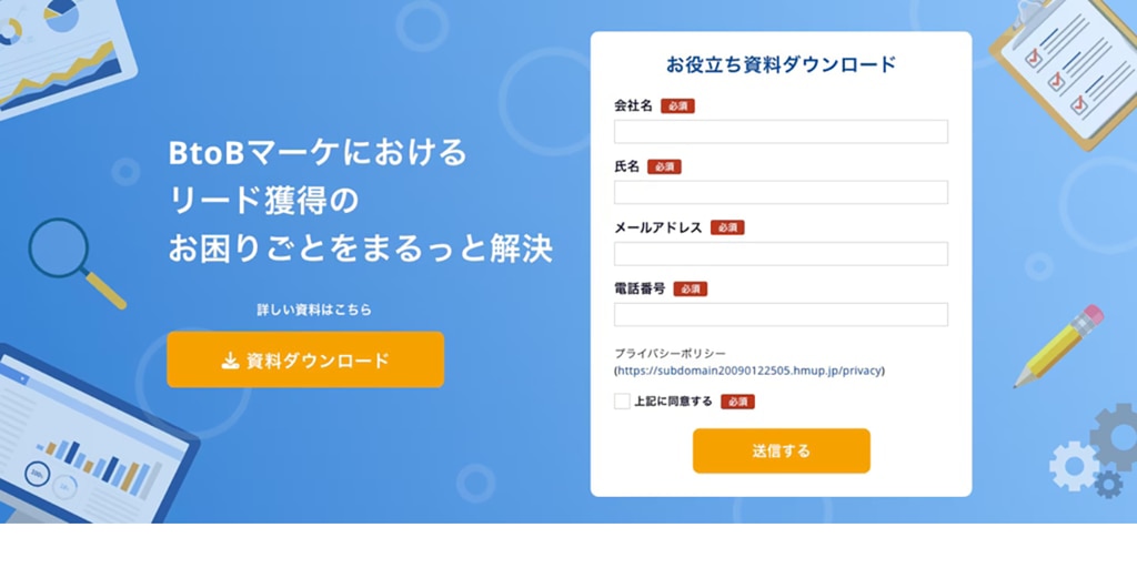 問い合わせ導線を作りたいメインビジュアルWebからのリード・受注を増やしたいフォーム一体型