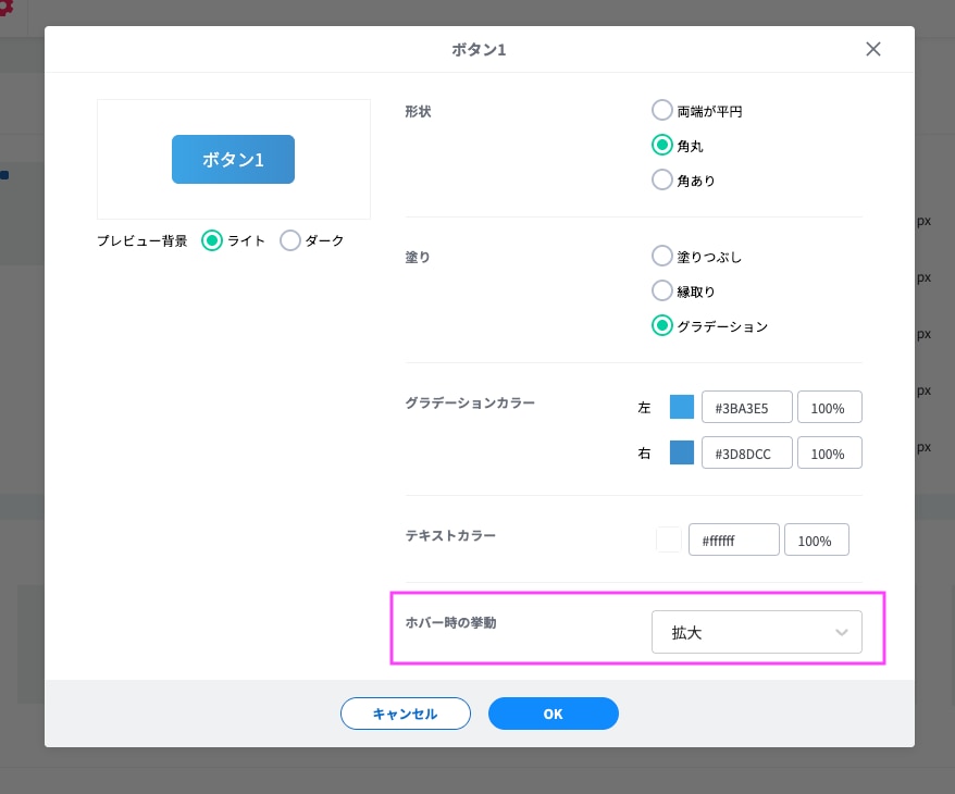 ベースデザイン設定でボタンのホバーを「拡大」に設定しているとナビのエリアからはみ出して見えます。